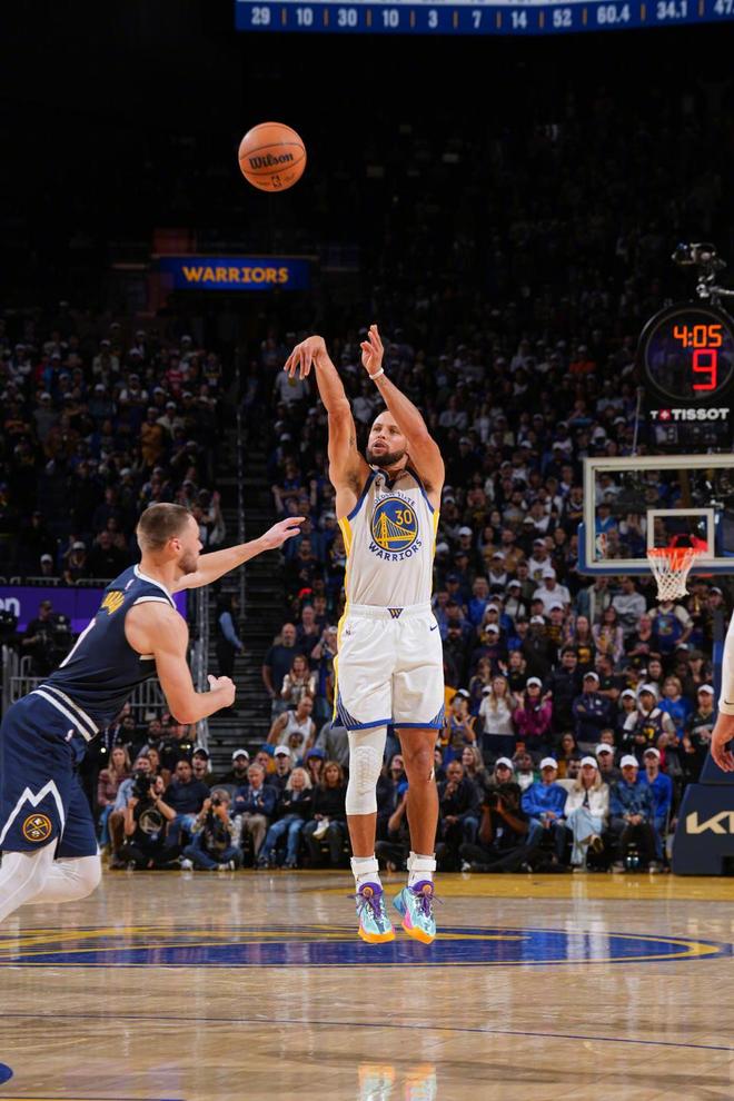 北京时间10月24日,NBA常规赛上演了一场惊心动魄的对决。金州勇士在主场历经加时鏖战,最终以137比131力克丹佛掘金。而这场比赛,再一次成为斯蒂芬·库里个人表演的舞台——他出战36分钟,轰下42分6篮板7助攻3抢断1封盖,三分球12中6,罚球8中8,以极高的效率主宰了比赛的走向